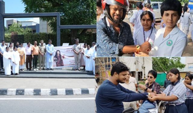 Students, volunteers, police personnel, and departmental staff collaborated in this effort, encouraging drivers to commit to safe driving practices. The ‘Suraksha Dori’ acted as a metaphorical reminder that just as Rakhi represents protection and care, road safety is a collective responsibility to protect lives.
