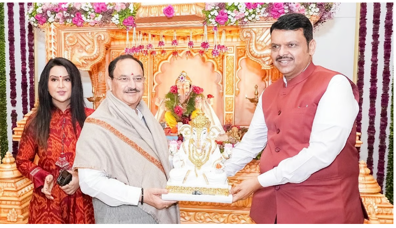 During the visit, Nadda also went to the residence of CM Devendra Fadnavis, where he performed Ganesh pooja and sought divine blessings alongside Fadnavis and his family. The BJP leader underlined the party’s vision for a self-reliant and prosperous India, stating, “Under PM Modi’s leadership, we are moving towards a Swadeshi-oriented, strong, secure, and developed Bharat. I sought the blessings of Lord Ganesh to remove obstacles and strengthen us to achieve these goals.”