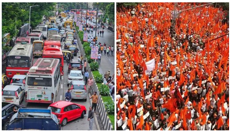 Mumbai: Commuters in South Mumbai faced major traffic disruptions on Monday, September 1, as the Manoj Jarange-Patil-led Maratha Morcha prompted authorities to impose extensive road closures and diversions.