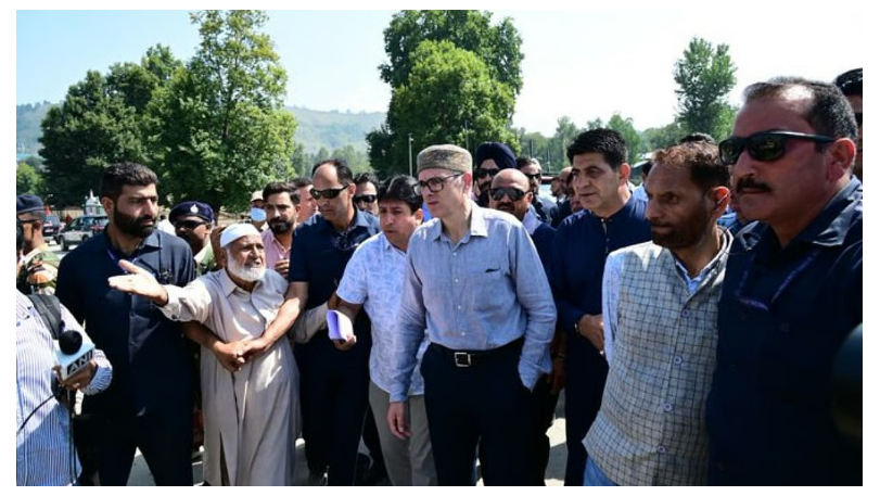 Srinagar: Jammu and Kashmir Chief Minister Omar Abdullah on Saturday visited flood-affected areas of Anantnag district to personally assess the scale of damage and assure relief to impacted families.