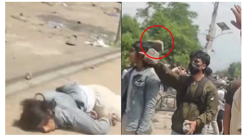 The video, shared on X by user Aprichit Keto and credited to Bagi Post, shows the youth falling unconscious as fellow demonstrators rush to provide medical assistance. His current condition remains unknown.