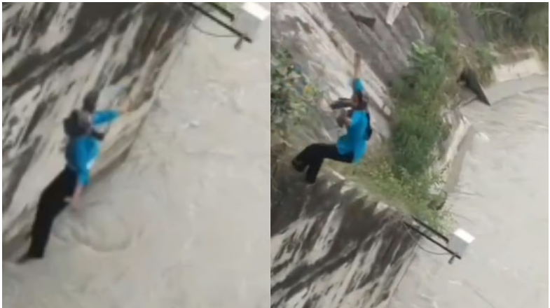 A shocking video of the incident has gone viral on social media, capturing the exact moment when the young woman jumped into the barrage.