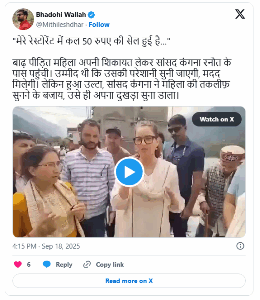 During her visit, the actress-turned-politician expressed her emotional anguish over the financial hardships she herself is facing, citing massive losses suffered by her restaurant in Manali as an example of how the disaster has impacted local businesses.